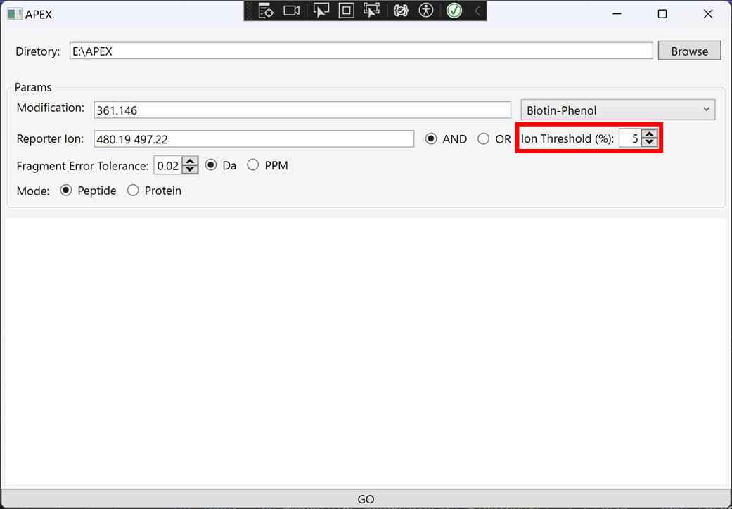 Threshold (%)" - minimum reporter ion peak intensity relative to the